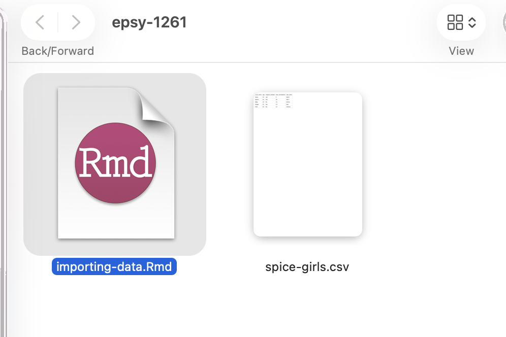 After you have saved your data, place it in the same folder as your RMD file. This is where R will look for the data when you give it the syntax to import the CSV file.