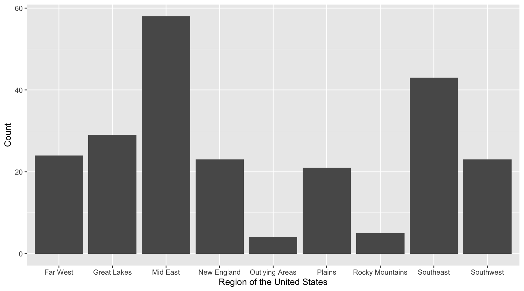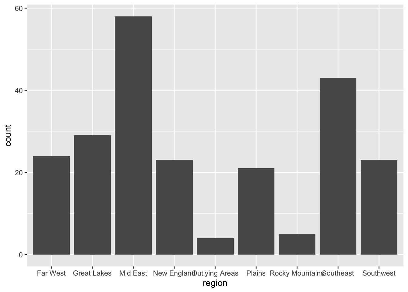 To create a bar chart, we will use the gf_counts() function. This general syntax for gf_counts() is