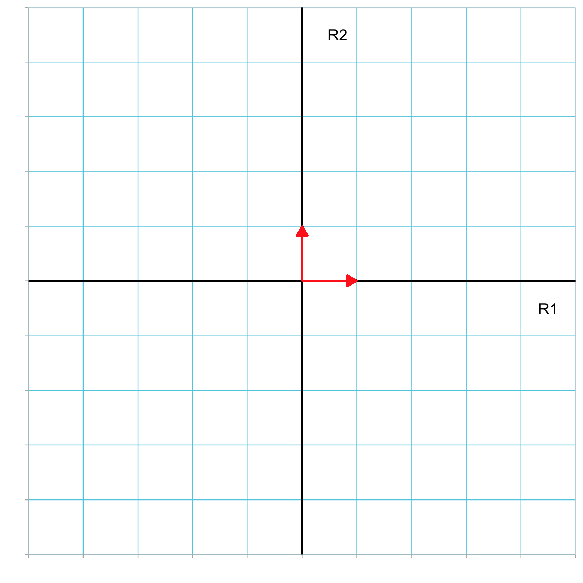 Figure 2.9: Plot showing the two elementary vectors in the R1–R2 dimensional space. All vector tails have been located at the origin.