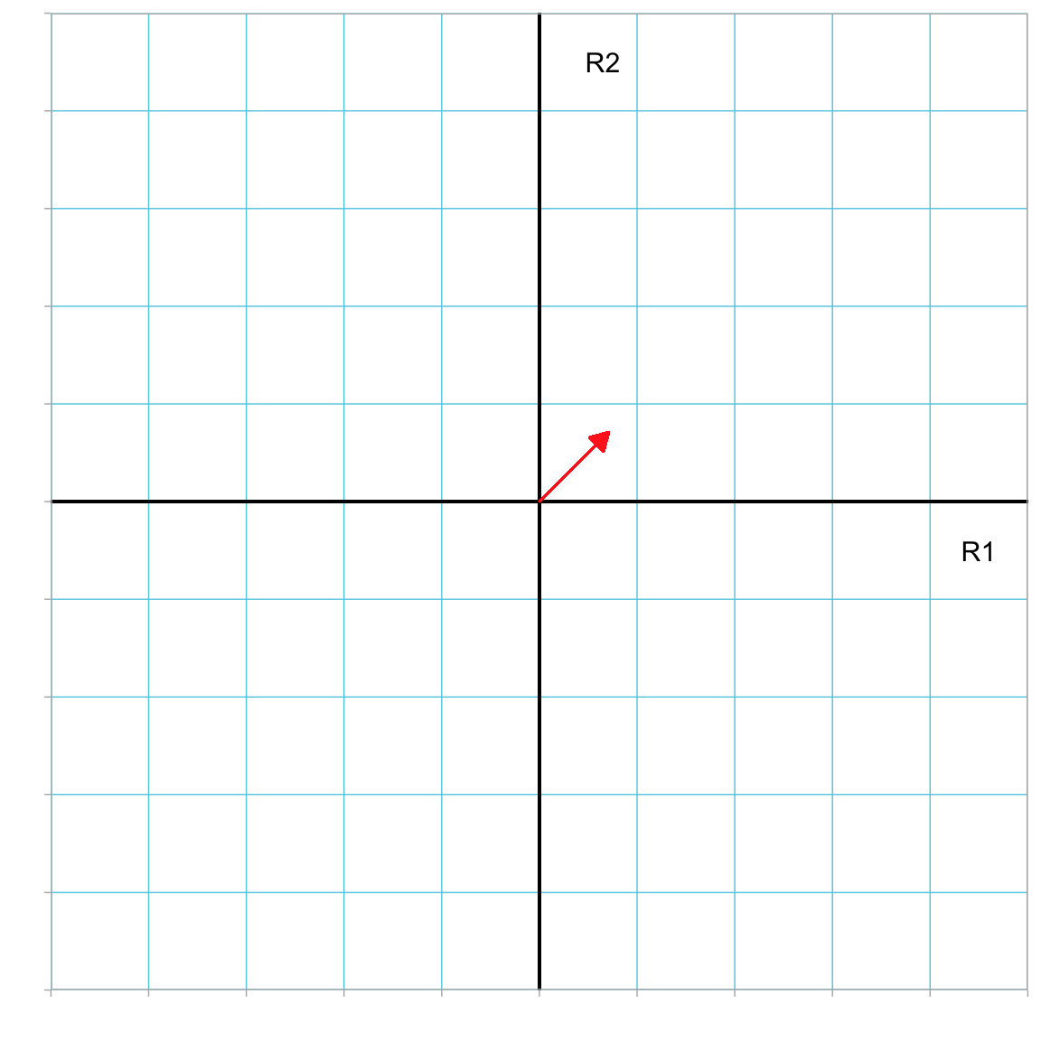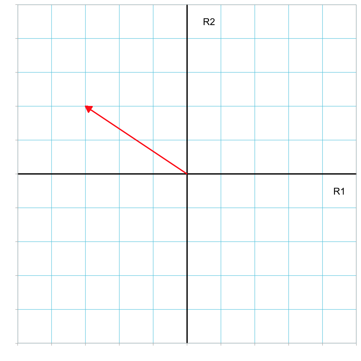 This vector has a distance of 2 on the first reference axis (R1) and a distance of 3 on the second reference axis (R2).