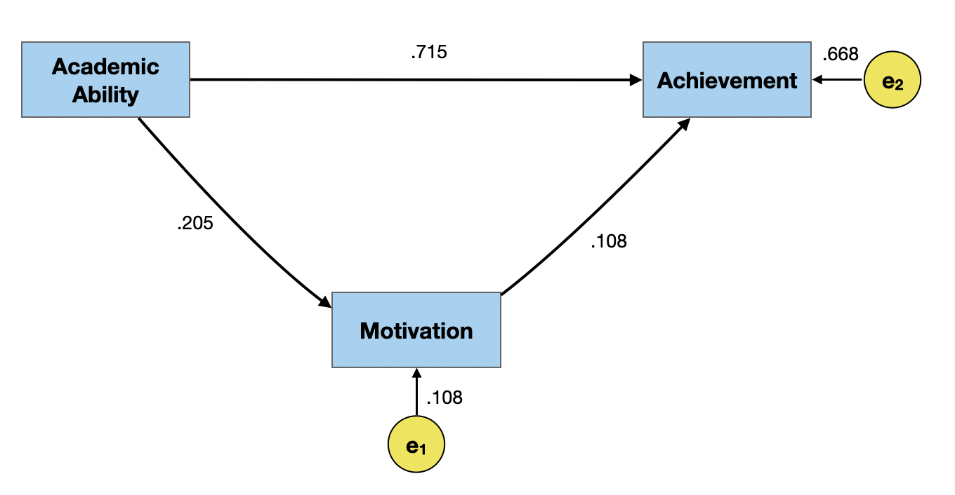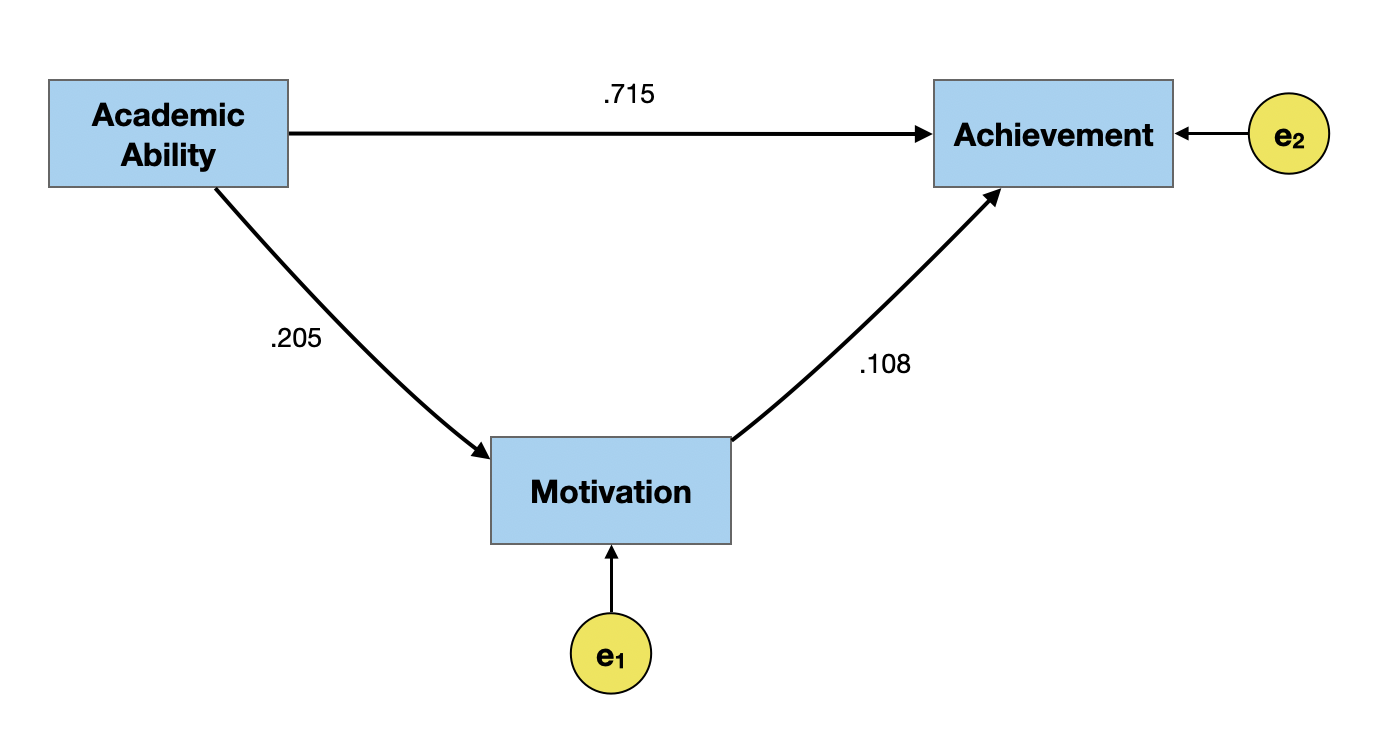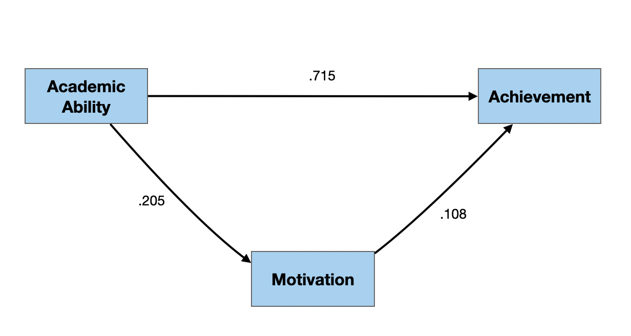 In our path diagram relating academic ability and motivation to acheivement, academic ability is furthest to the left (it occurs earliest), followed by motivation, and then academic achievement.