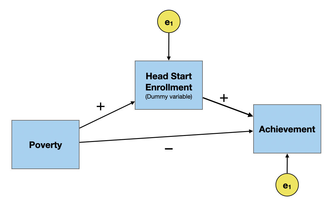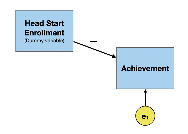In practice, the path coefficient tends to be negative. That is Head Start participants tend to have lower academic achievement than their non-Head Start peers.