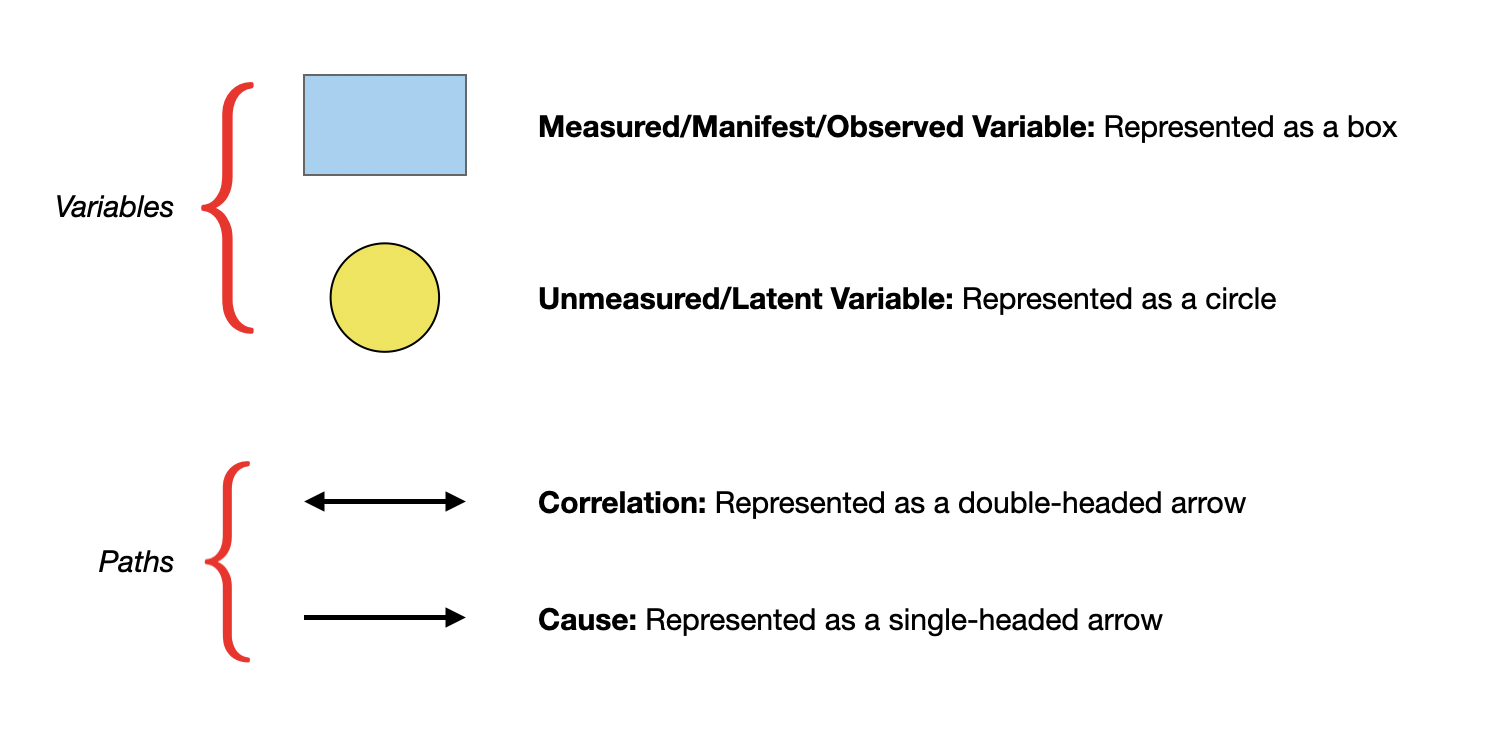 Path diagrams are visual depictions of the hypothesized relationships between a set of variables. In this set of notes, we will introduce some of the ideas and concepts related to path diagrams, and the estimation of effects depicted in a path diagram (i.e., path analysis).