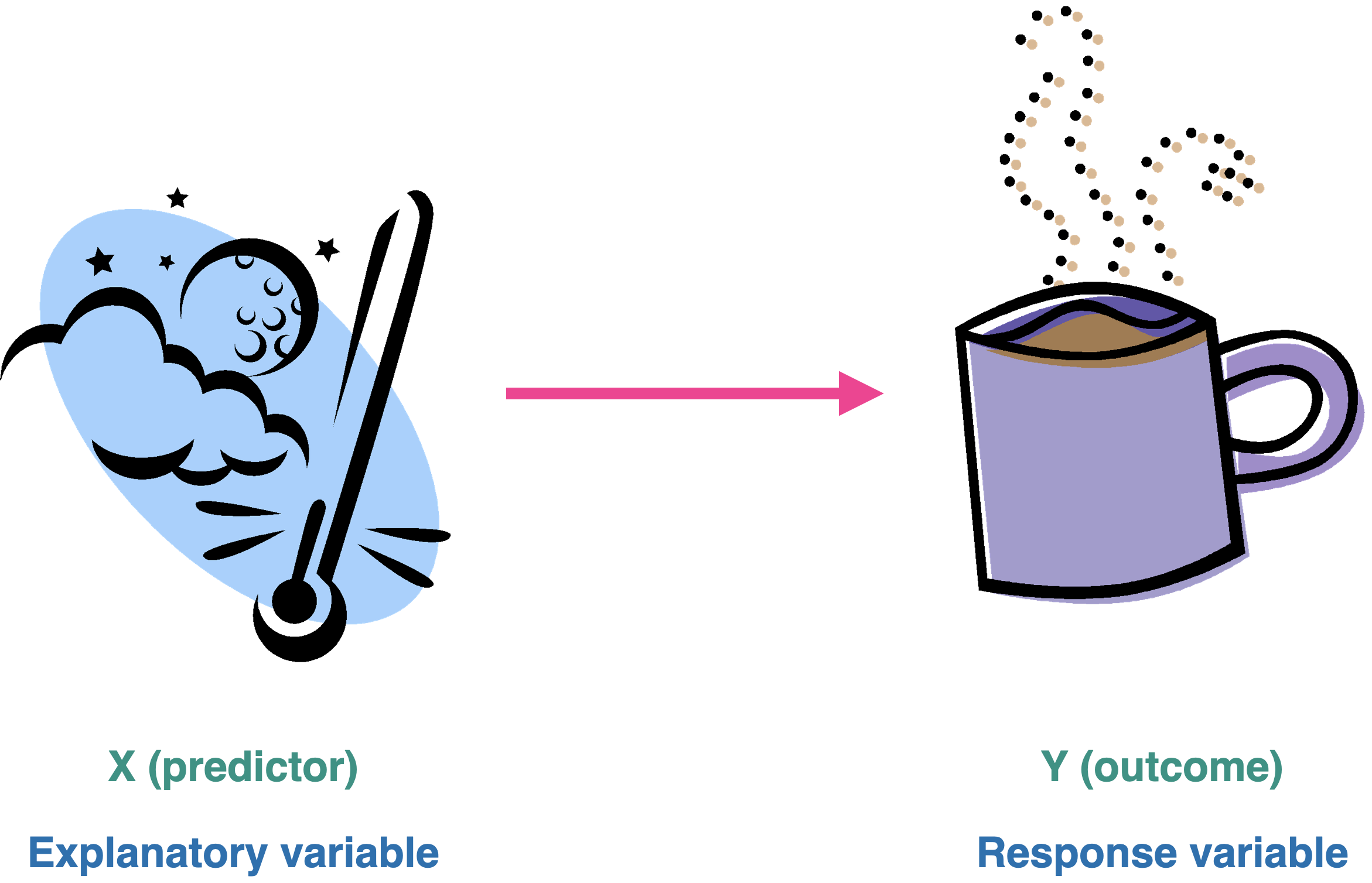 - Explanatory variable: The variable you want to use as a predictor (goes on x-axis)