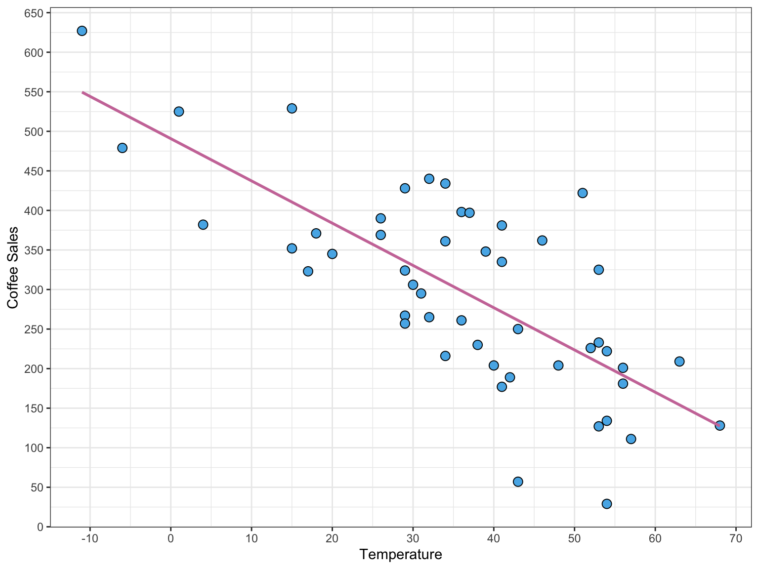 lm(formula = coffee_sales ~ 1 + temperature, data = coffee)
